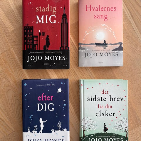 Jojo Moyes Efter dig og Stadig mig bøger. To romaner med forskellige omslag, begge på dansk.