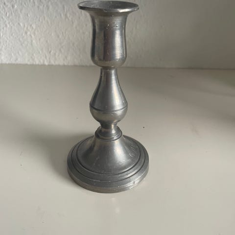 Fin gammel (tung) lysestage i tin , 18 cm høj.