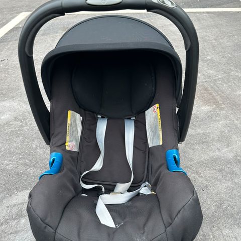Britax Römer Autostol til baby max 13 kg. Autostolen har sikkerhedssele og solskærm, designet til at sikre komfort og beskyttelse for spædbørn under transport.