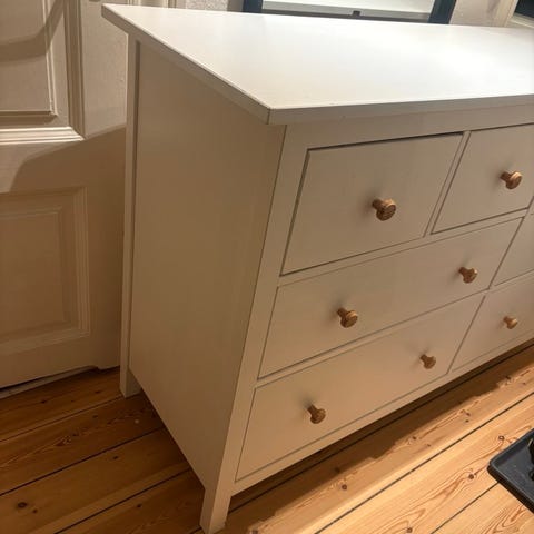 Hvid skænk/kommode som trænger til et nyt hjem. Ideel til en, som har lyst, evner og tid til at shine den op.