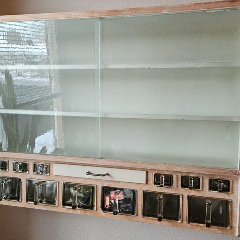 Fint københavner væghængt skab. Alle glaslåger intakt.