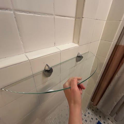 House Basic Glashylde i rustfrit stål. Glashylden er designet til at kunne monteres på væggen og bruges til opbevaring eller som dekorativ hylde i hjemmet. Materialet er rustfrit stål, hvilket sikrer holdbarhed og nem rengøring.