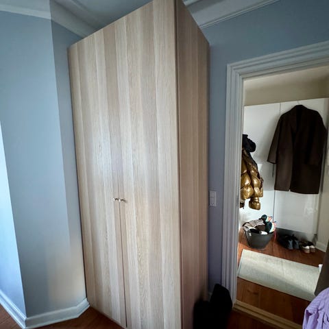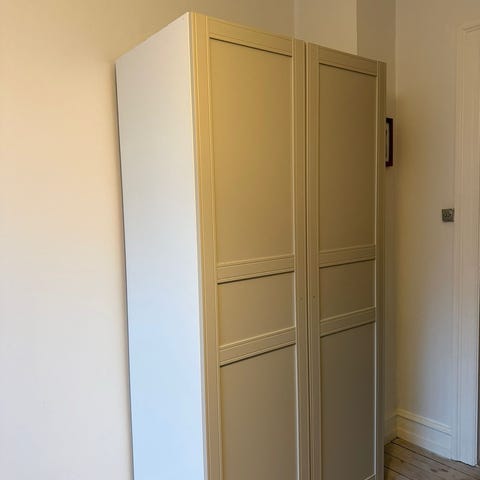 Ikea pax skab, hvor der er 5 hylder, 3 trådkurve og hylde til smykker eller andet. Skabet er 2år gammelt og har ingen synlige eller funktionelle brugsspor.