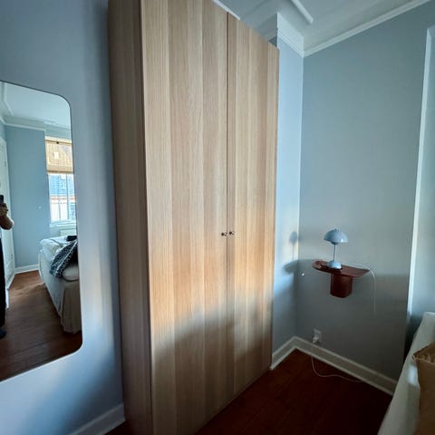Jeg kan skille skabet ad inden afhentning, men delene skal selv bæres ned fra 4. sal uden elevator.