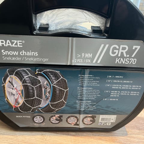 Snekæder, tysk fabrikat, af mærket Eurostar. En lidt ældre model, men stadig funktionel og enkelt at montere, efter samme princip som nyere snekæder. En ekstra sikkerhed at have med på skiferien.