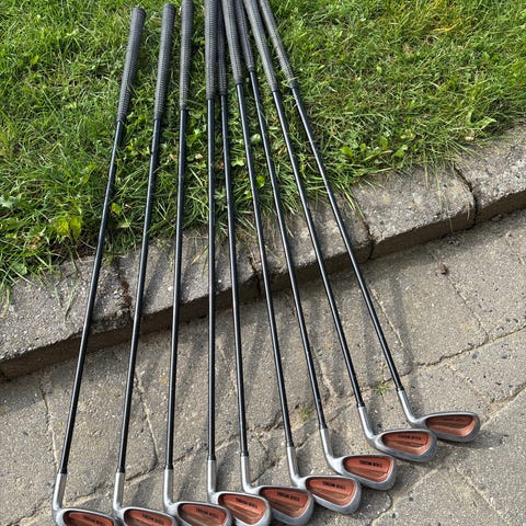 Har en del gamle/aldrende golf jern som kan bruges til begyndere og til at øve. Der er fra SW til 5, og det er 50 kr stk.