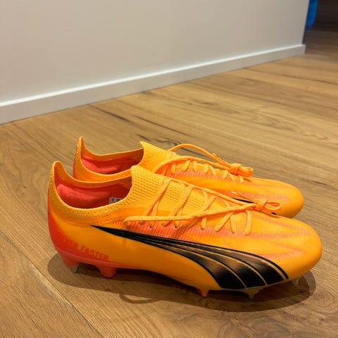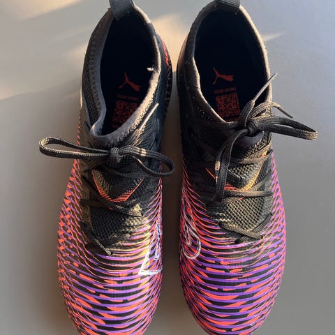 Kun brugt i 4 gange. Derfor som nye. Puma future 8 pro FG/AG fodboldstøvler i sort med grønne detaljer. Støvlerne har en snørelukning og en høj ankelkrave for støtte. Sålens knopper er designet til spil på græsunderlag. Indersålen er grøn med Puma-logo.