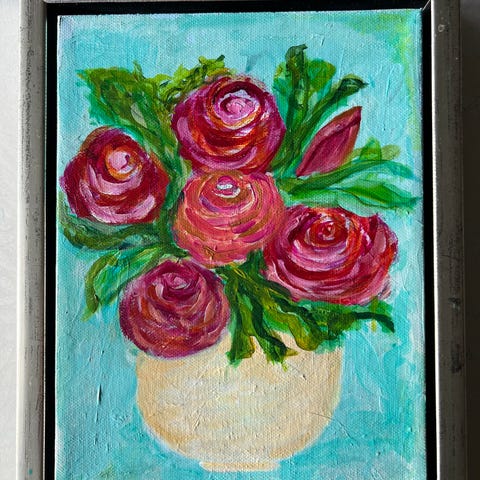 Blomstermotiver malerier sæt 4 stk 32x32cm