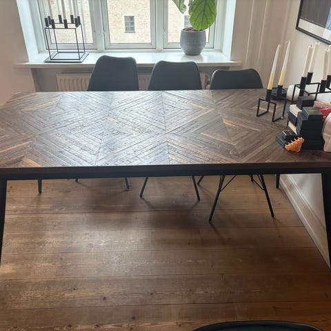 Rustikt træbord med metalstel