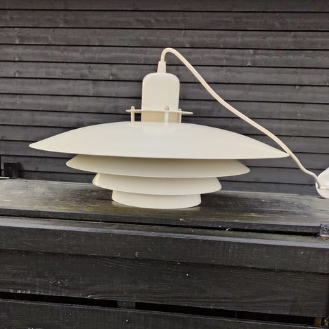 Klassisk PH pendel lampe i hvid og blå. Kan afhentes på Christianshavn