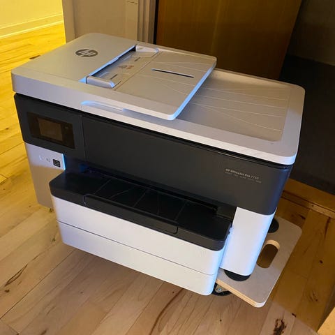 Kompakt HP OfficeJet Pro 8025e multifunktionsprinter. Kan printe, scanne, kopiere og faxe. Trådløs forbindelse (WiFi) og nem betjening.