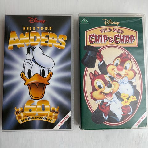 Disney Anders & Co. VHS bånd med animationer af kendte figurer som Anders And og Fedtmule. VHS-formatet er velegnet til afspilning på kompatible videomaskiner.
