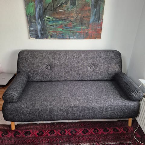 Fin lille 2.pers. sofa, købt i Bolia for mange år siden. Den har nogle kradsemærker på hjørnerne fra en kat, se billede.