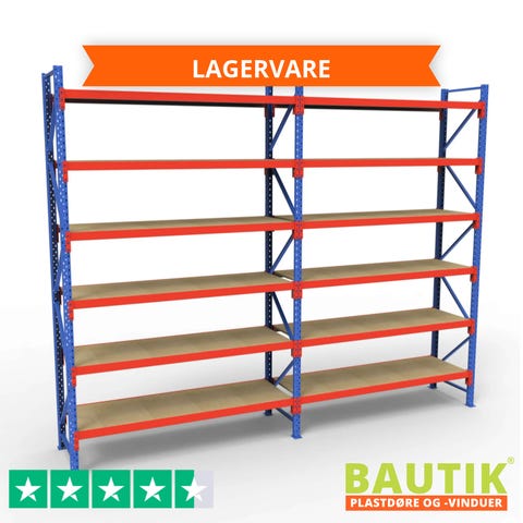 Komplet Lagerreol | 2 Fag | 6 Lag | 180cm Vanger | Højde: 300cm | Dybde: 40cm