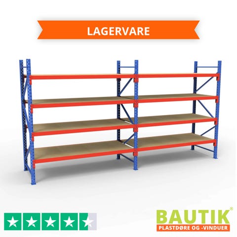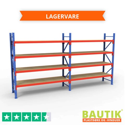 Komplet Lagerreol | 2 Fag | 4 Lag | 180cm Vanger | Højde: 300cm | Dybde: 60cm
