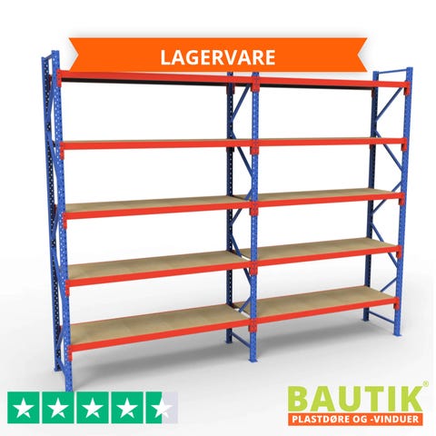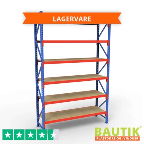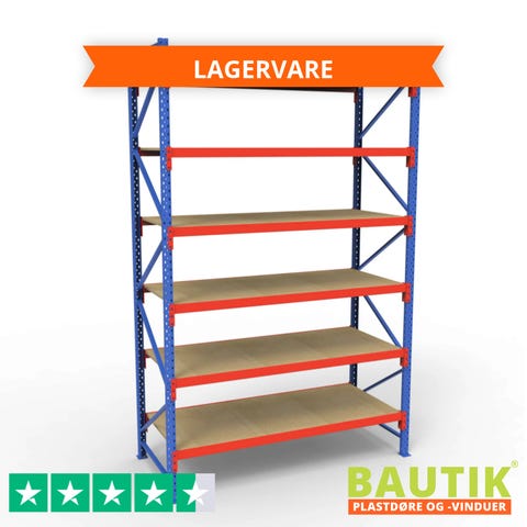 Komplet Lagerreol | 1 Fag | 5 Lag | 180cm Vanger | Højde: 300cm | Dybde: 40cm