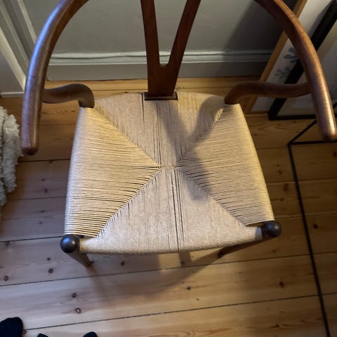 Hans J. Wegner, ?, Flettet stol, 2 Brugte stole i træ fin stand. Et seriøst bud modtages. Skambyd besvares ikke.