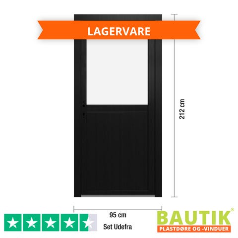 Plast Udhusdør - ½ Klart Glas Antracit 95 x 210 Højre Ind (HI)