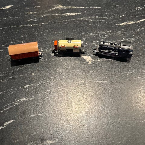 +box modeltog med fire container. Toget er hvidt med røde og sorte detaljer. Leveres i original emballage med beskyttende skum.