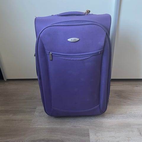 2-hjulet lys grå/brun rejsetaske fra Aries i kunststof med målene Længde:50cm Brede:30cm Dybde:20cm. Rejsetasken har en lettilgængelig lomme udvendigt foran på tasken. Indvendigt har den ene side en stor netlomme og den anden side et pakkerum. Kufferten har et bærehåndtag både på toppen og på siden og har desuden et udtrækshåndtag som bruges når tasken trækkes/rulles. Meget begrænset brug. Kun afhentning.