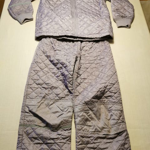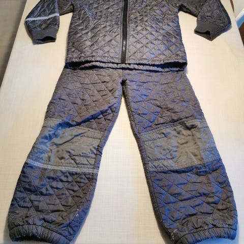 CeLaVi thermosæt bestående af en jakke og bukser i størrelse 86. Farven er grå og er lavet i quiltet design og der er forstærkede knæpartier på bukserne.