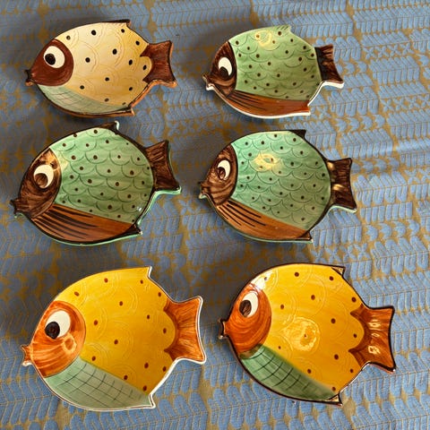 Knabstrup tallerken fiskeserien med motiv af 3 skibe.