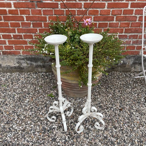 Store og kraftige lysestager i jern, malet hvid. Måler 27 cm i højden. Prisen er for begge to. Minus lys.