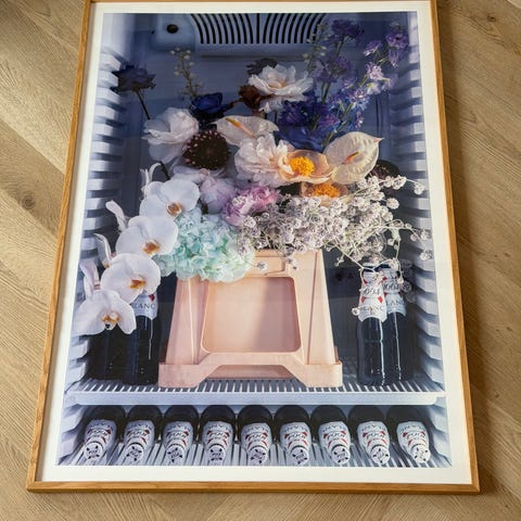 Måler cirka 102x73 cm med ramme.