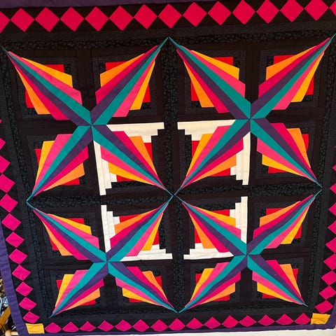 Håndlavet patchwork tæppe i orange, gul og grøn