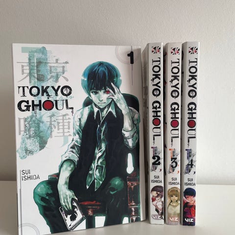 Tokyo Ghoul manga by Sui Ishida. Graphic novel featuring the story of a young man involved in a world of ghouls. Suitable for readers interested in dark fantasy and horror genres.