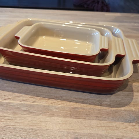 jeg sælger disse 4 fade fra le creuset. det største fad er 32cm X 20cm. skriv endelig hvis der er spørgsmål