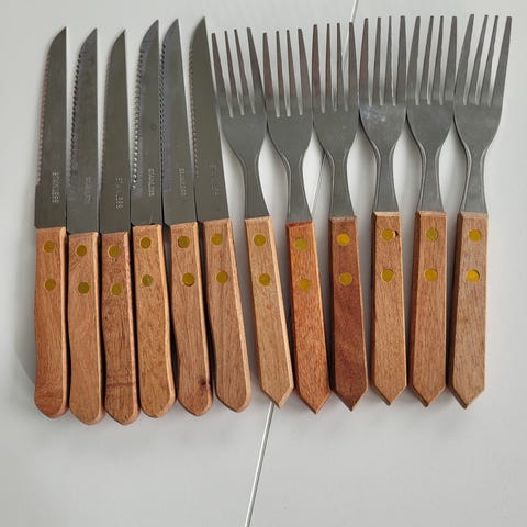 Grillbestik med sort plastikhåndtag til 6 personer.