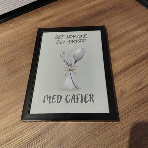 Billedet har været oppe og hænge, så rammen har lidt brugsspor, men uden betydning, man kan jo altid skifte ramme.