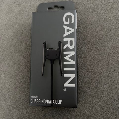 Sælger denne originale lader til Garmin GPS-ure. Sættet består af både selve strømforsyningen (vægstik) og det specifikke ladekabel med klemme.