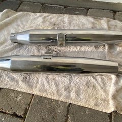 2" Drag Pipes for Softail. 2 sæt pipe baffles medfølger. Et sæt med lovlig lyd og et sæt med den rigtige harley lyd.