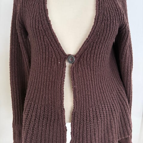 Hugo Boss cardigan i lys armygrøn farve, fremstillet i bomuld og Silke ( 32%) Passer til kvinder i størrelse S. Cardiganen har et let og 'gennemsigtigt' udtryk.