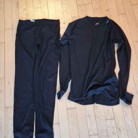 Sættet har fået et par typiske små huller hist og pist og desværre et større hul(ca 1 krones str) på venstre lår som skal repareres(se nærfoto med rød ring) Leggings følger derfor gratis med i købet hvis man er interesseret.
