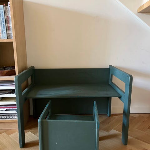 Flot og stilren retro børne skrivebord - stol og bord i en. Brugsspor fra et langt liv, men yderst velholdt.
