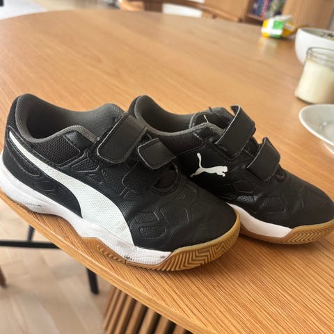 Puma basketballsko i størrelse 37. Skoene er designet til basketball og har sort overdel med hvide såler. De er velegnede til sportsbrug og indeholder snørelukning for en sikker pasform.