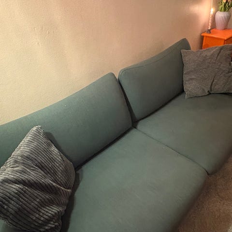 Flot og komfortabel mørkegrøn 3-personers sofa købt på “møbler” for 4999. Sofaen er kun 1 år gammelt og er i virkelig god stand. Den sælges udelukkende, fordi den er for stor til min stue. Sofaen måler 184 cm i bredden, 82 cm i højden og 90 cm i dybden.