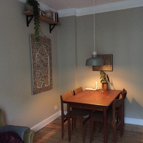 Udtrækket er slidt, så det kræver nok en praktisk hånd og bordpladen har brug for olie.