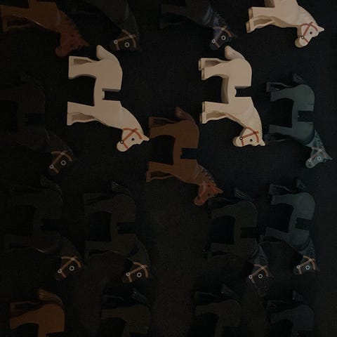 LEGO Heste i farverne brun og hvid.