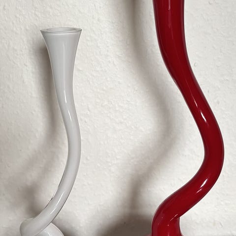 Normann Copenhagen vase lavet i glas. Figuren har en unik form og er mundblæst i hvidt opalglas med turkis overfang. Velegnet som dekoration i hjemmet eller på kontoret.