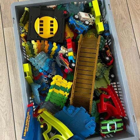 Sort sæk med flexi track / trax bane, forskelligt tilbehør, meget mere end på billedet, flere skinner kan hentes i Hvidovre.