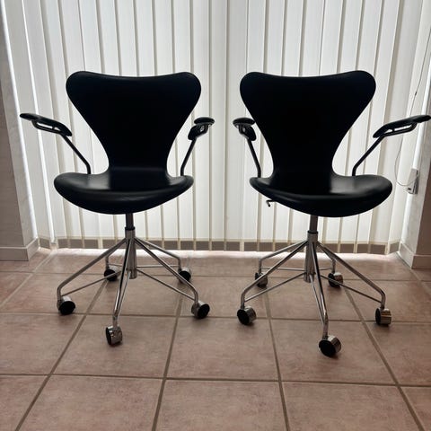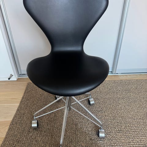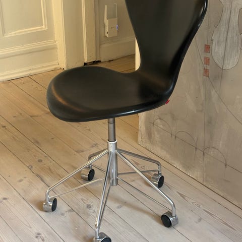 Original Fritz Hansen designer kontorstol med Læderbetræk og Drejefod med hjul i god stand.