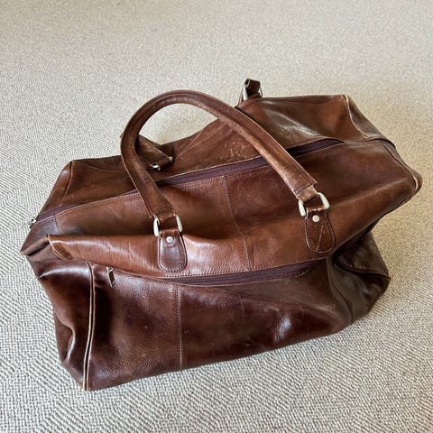 Eksklusiv og rummelig weekendtaske i ægte kernelæder. Tidløst design, solid kvalitet og perfekt til weekendture eller som stilfuld rejsetaske. Velholdt og klar til brug. Smukt ternet stof inde i tasken.
