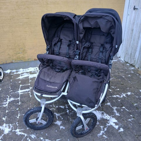 Tvillingeklapvogn fra Bayer Chic 2000 med drejelige forhjul. Sæderne kan tages af og det hele kan klappes sammen ligesom en rigtig klapvogn (bedst med voksenhjælp).