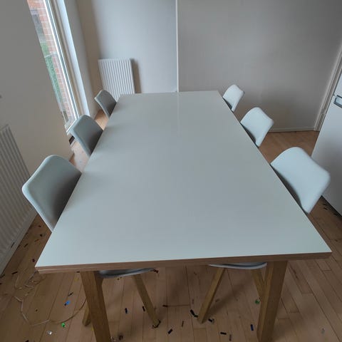 Spisebordssæt med 8 stole og 2 indlægsplader