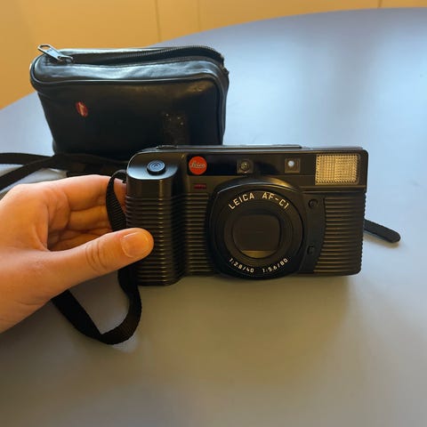 Leica C2-zoom fotokamera. Kameraet er analogt og leveres med etui og rem.