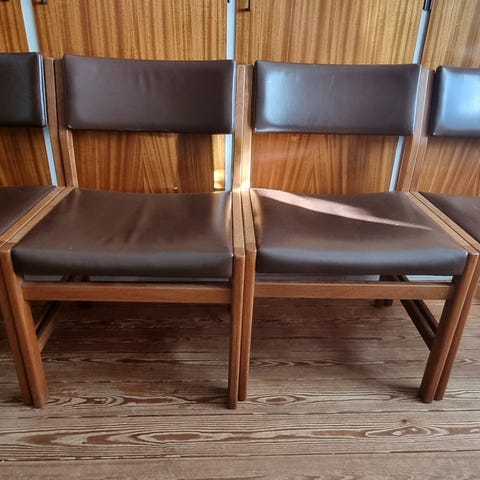 2 Kurt Østervig spisebords stole I massiv egetræ med cognacfarvet læder